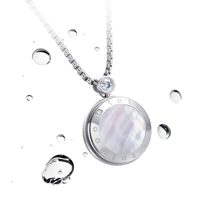 گردنبند Soulmates 2.0 Touch با ترکیبی از متریالهای طبیعی و باارزش طراحی شده است. نسخهی مردانه از سنگ آتشفشانی ابسیدین مشکی ساخته شده که نماد قدرت، حفاظت و عمق است؛ در حالیکه نسخهی زنانه از صدف مروارید سفید با درخششی لطیف و خاص بهره میبرد که نشاندهندهی لطافت، احساسات ناب و عشق پاک است.