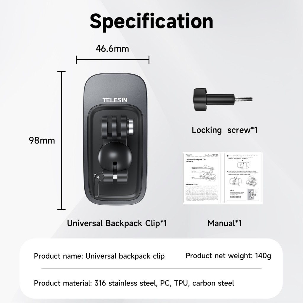 گیره کوله پشتی ۳۶۰ درجه TELESIN – گیره چرخشی حرفهای برای دوربینهای اکشن مدل GP-JFM-002