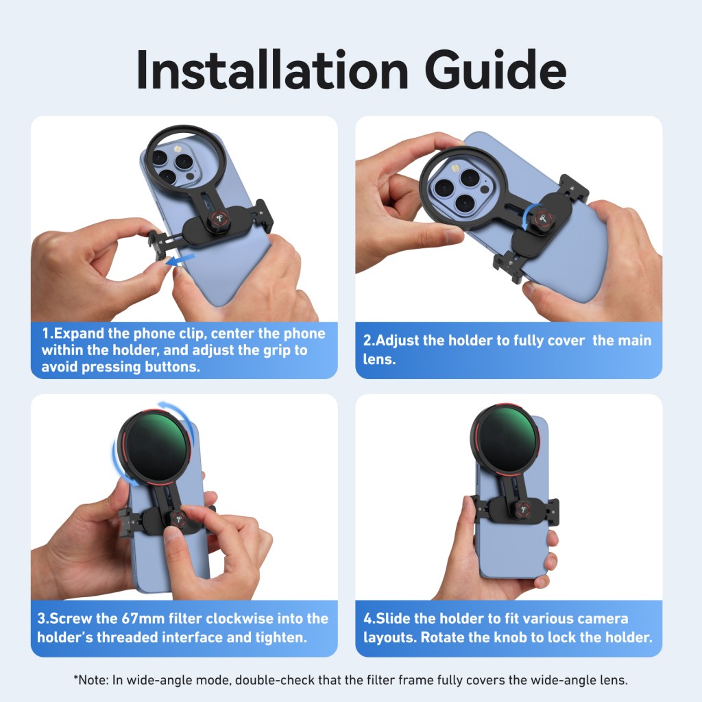نگهدارنده لنز تلفن همراه (برای لنز ۶۷ میلیمتری) برند TELESIN مدل P3-EAK-02 | اتصال حرفهای لنزهای بزرگ به موبایل