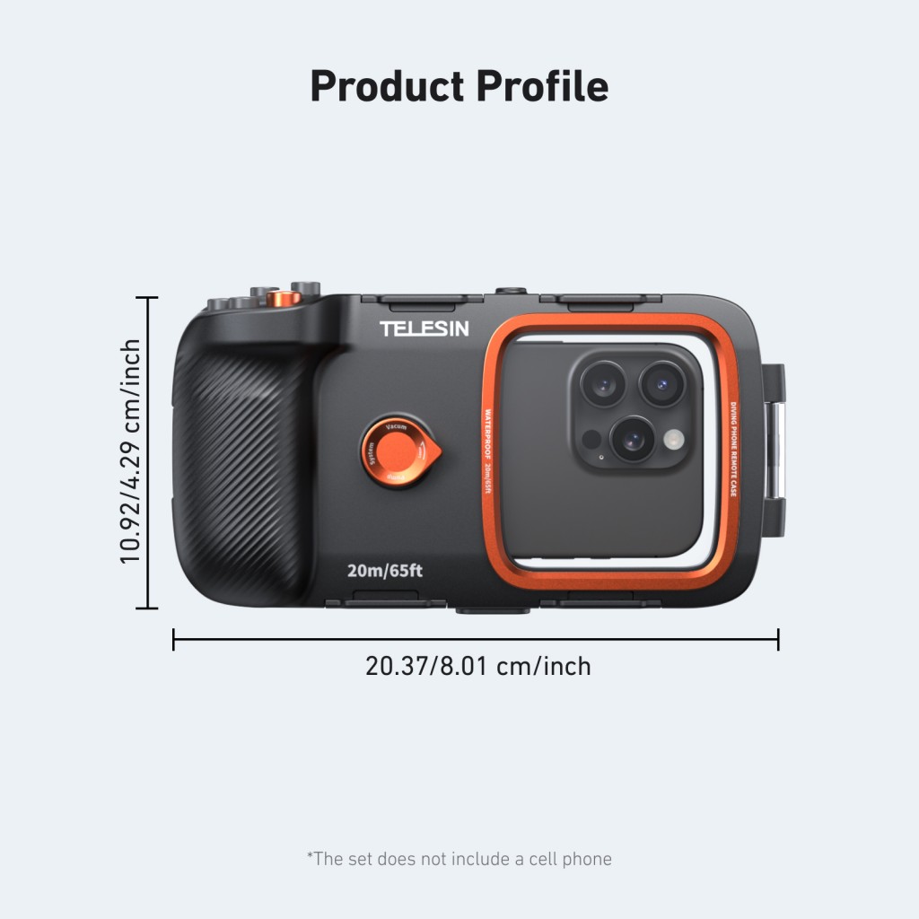 کاور غواصی زیر آب TELESIN مدل P4-WTP-06 یک محفظه حرفهای برای حفاظت و ضبط حرفهای گوشی هوشمند شما در محیطهای آبی است. این محصول با طراحی دقیق و قابلیتهای پیشرفته، مناسب برای غواصی، شنا، اسنورکلینگ، سفر در کنار دریا، یا هر فعالیتی که تلفن شما ممکن است در معرض آب قرار گیرد، است.