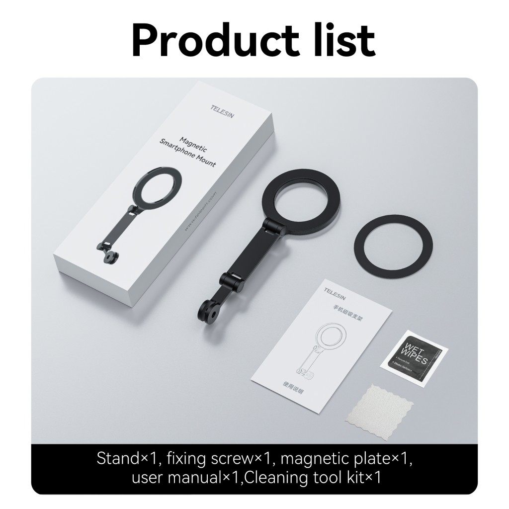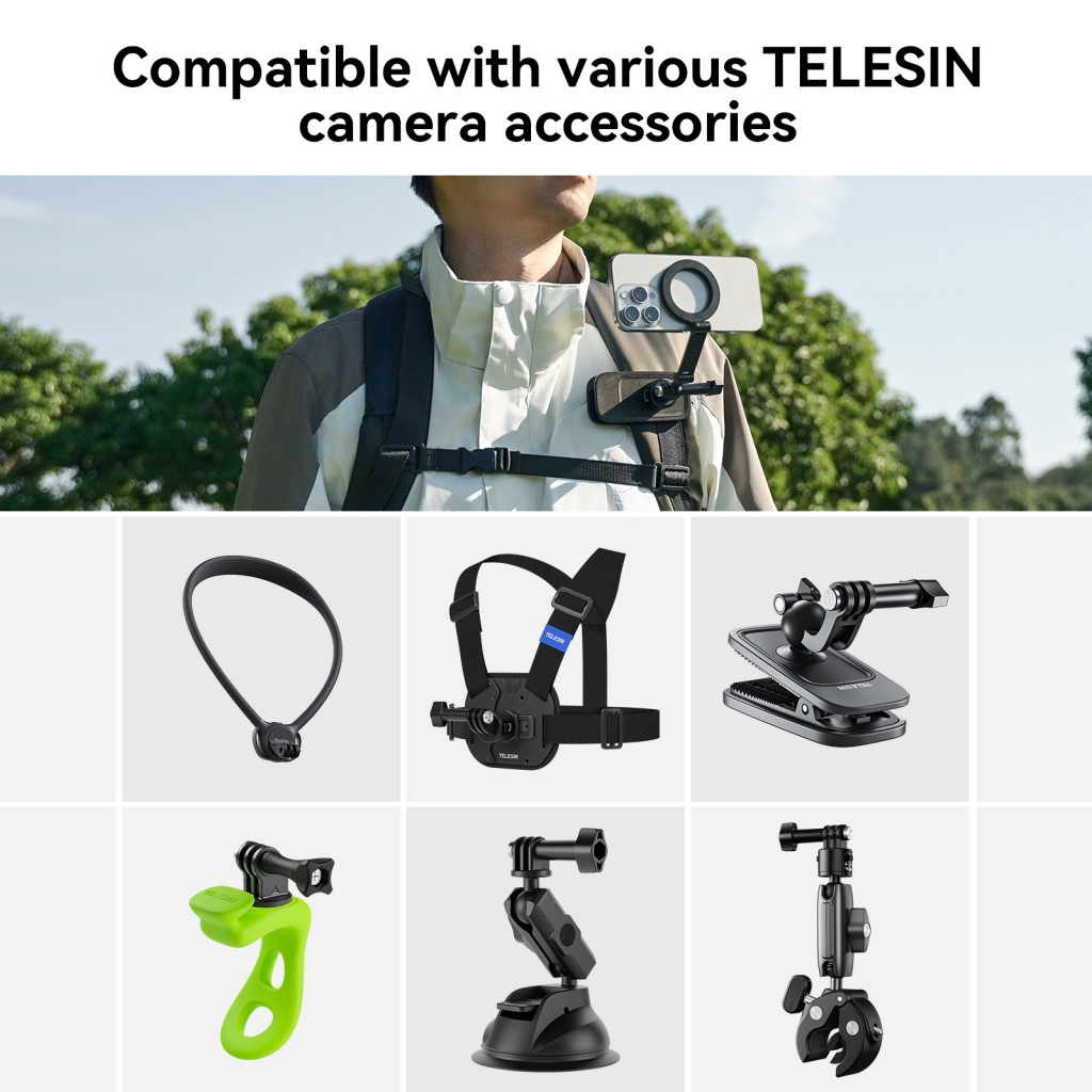 پلیت مغناطیسی TELESIN P7-MB-01 با تمام گوشیهای هوشمند (از آیفون تا سامسونگ، شیائومی و سایر برندها) سازگار است و برای پایههای اکشن، هولدر گردنی، گیرههای سینه، سهپایهها و مونوپادهای برند TELESIN و GoPro قابل استفاده است.