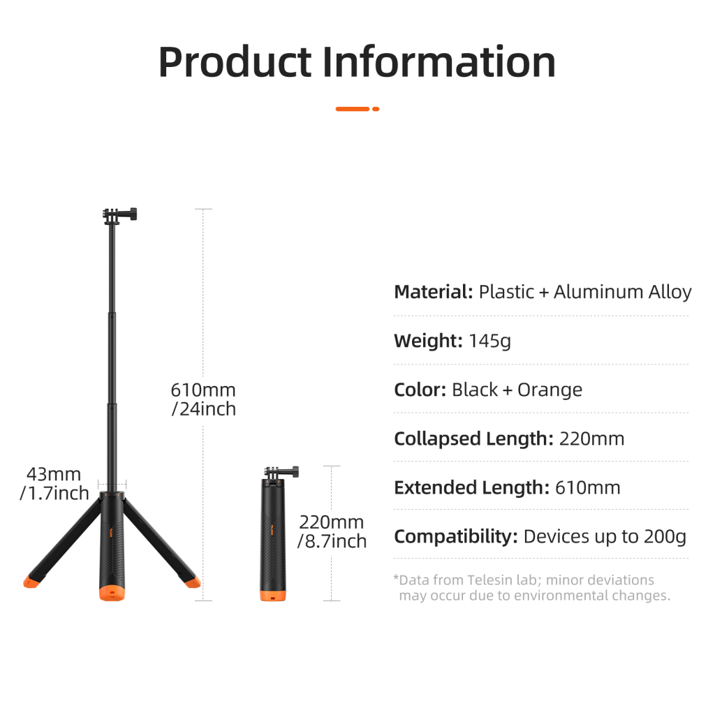 مونوپاد سلفی شناور با سهپایه برای دوربینهای اکشن – TELESIN S1-TSS-02