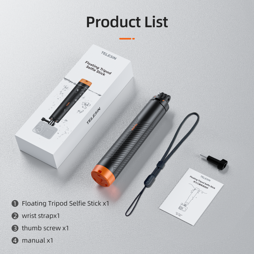 مونوپاد سلفی شناور TELESIN S1-TSS-02 یک پایه حرفهای و چندکاره برای دوربینهای اکشن مانند GoPro و Insta360 است که امکان استفاده روی آب و فعالیتهای آبی را فراهم میکند.